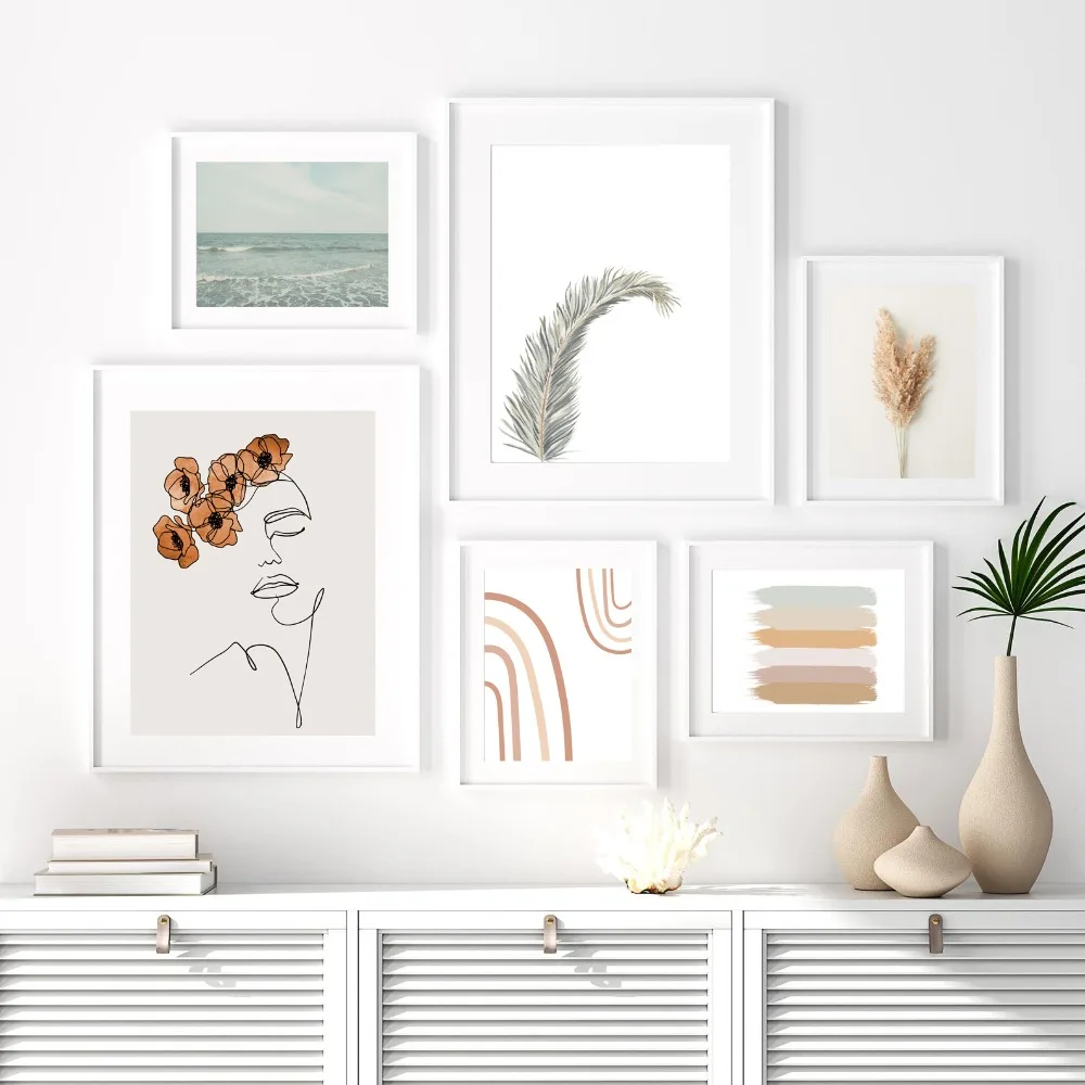 Бохо пляжное галерея настенные картины Женственная Дамская обувь линии абстрактное искусство, принты Радуга постер с солнцем, холст для живописи Декор в гостиную