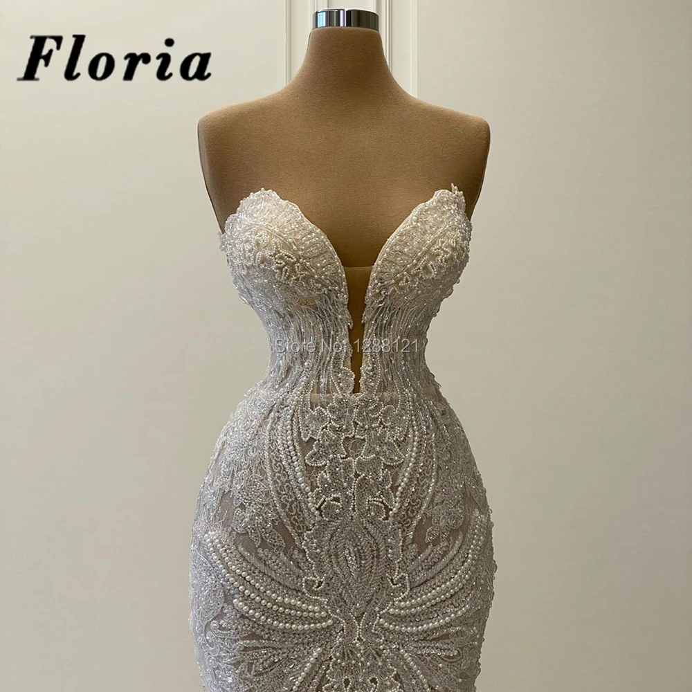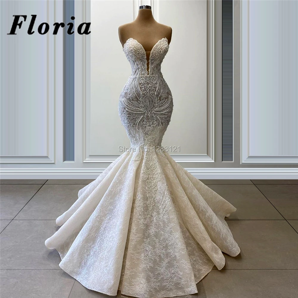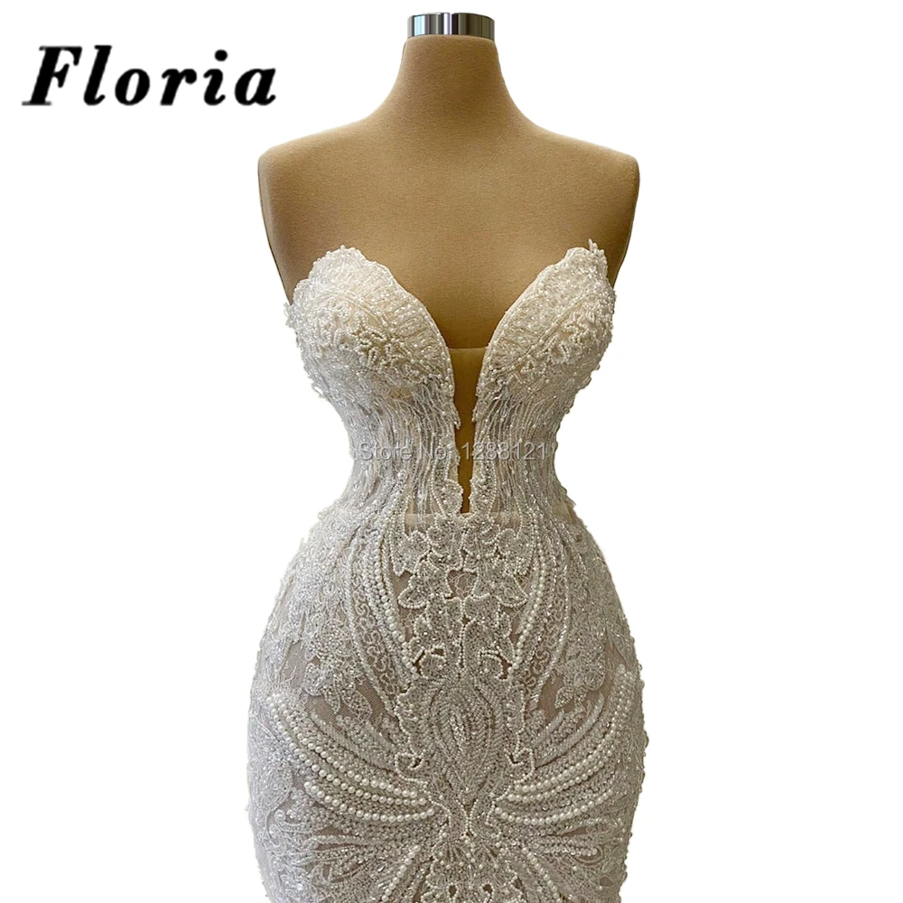 Женское свадебное платье с юбкой годе, кружевное платье принцессы с бусинами и V-образным вырезом для церемонии невесты, индивидуальный пошив, 2020