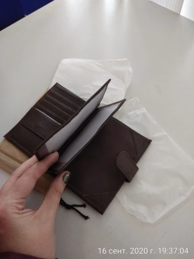 портмоне как портмоне. какая цена такой и портмоне. своих денег стоит. заказывал с России продавец написал нету. отправили с Китая две недели до Питера. главным критерием был чтоб загран паспорт убирался в сложенном виде. Но увы в сложенном не влазил полностью не куда. В развёрнутые купиры тока в один отсек можно положить для двух валют нет либо свернуть пополам и положить в другой отсек. которых два внутри один с наружи. Ну а так портмоне своих денег стоит посмотрим на сколько хватит.