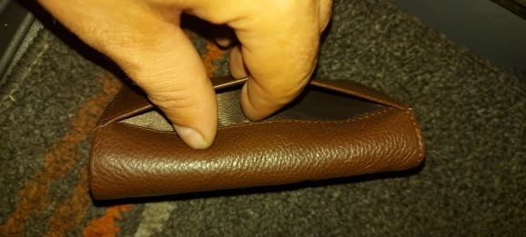 сшито не очень качественно, торчат швы, не до конца прорезанные пазы для карт.