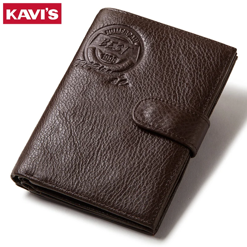 Мужской кошелек KAVIS, из натуральной воловьей кожи, Обложка для паспорта, кошелек для монет, держатель для карт, для путешествий, кредитных карт, деловой кошелек для мальчиков