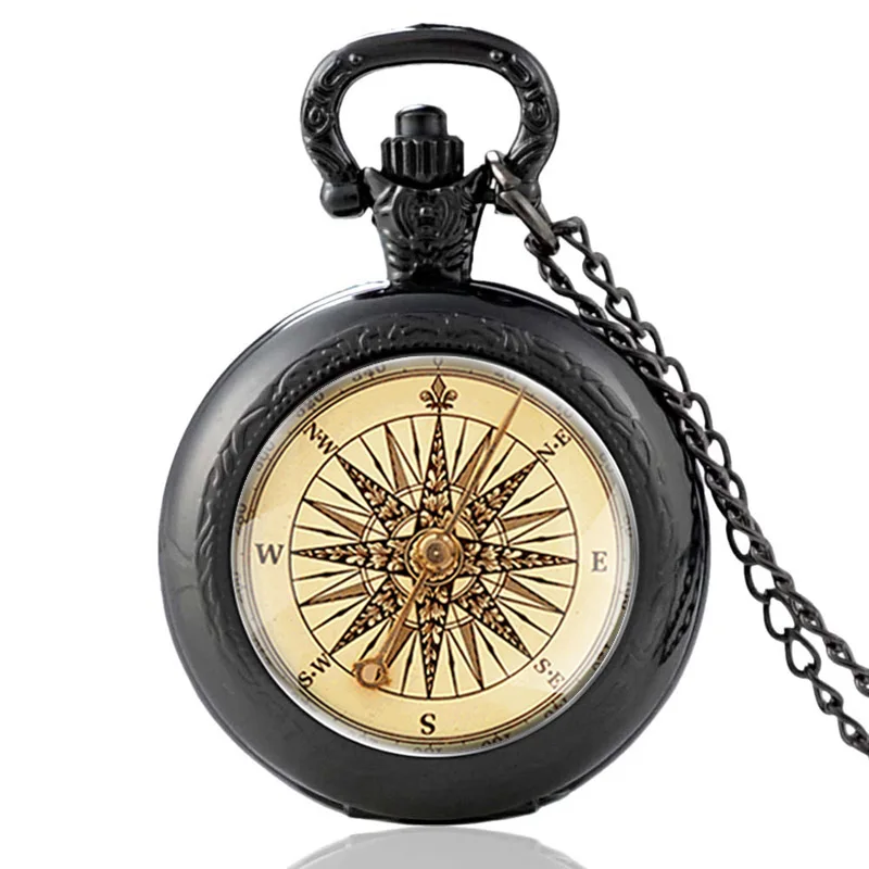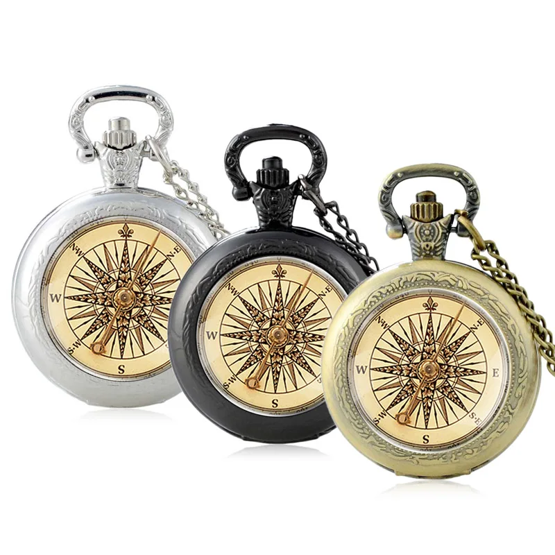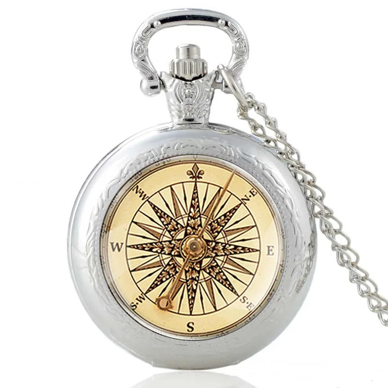 Антикварные карманные часы с компасом, кварцевые винтажные мужские и женские часы с подвеской, цепочкой и стеклянным кабошоном, Подарочные ювелирные изделия