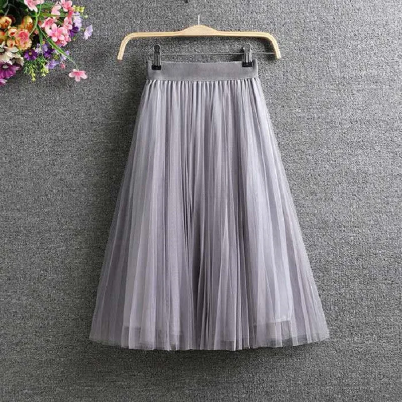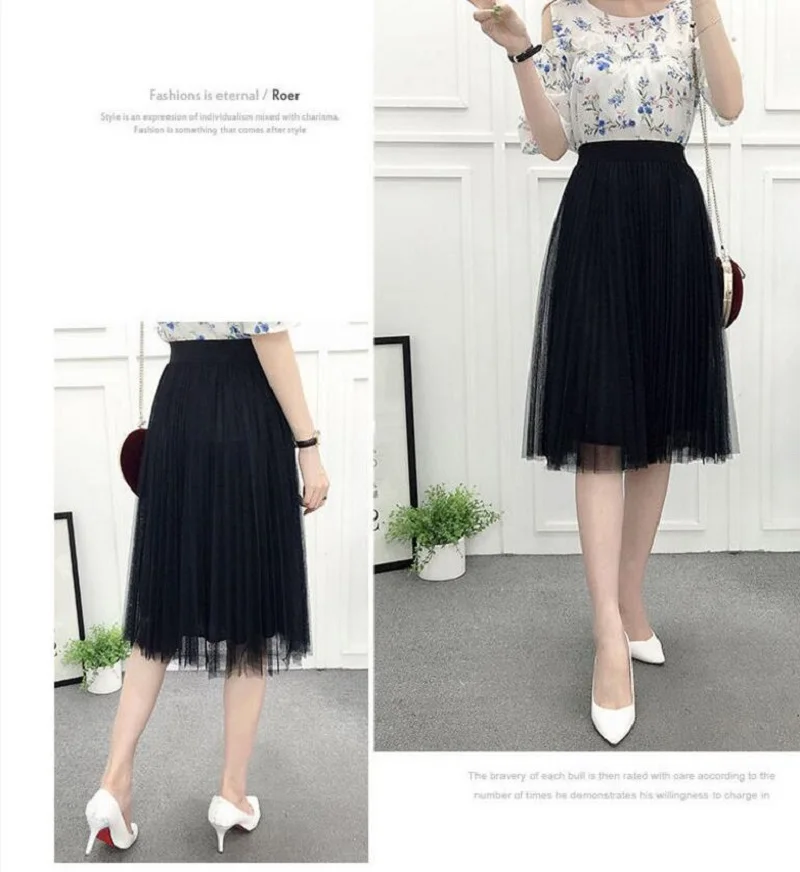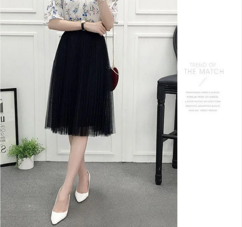 Женская винтажная юбка-пачка с высокой талией, элегантная эластичная плиссированная сетчатая Юбка-миди из фатина на лето женские юбки в стиле Casual