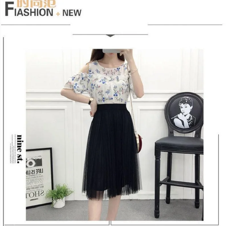 Юбка женская плиссированная, элегантная эластичная сетчатая юбка-пачка средней длины с высокой талией, винтажная, женские юбки в стиле Casual, на лето