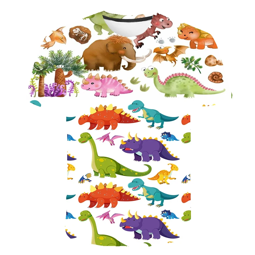 Новинка 2020, футболка для девочек с 3D принтом из мультфильма, модная детская одежда в западном стиле сычуань, футболка для мальчиков с динозавром, забавная уличная одежда для мальчиков