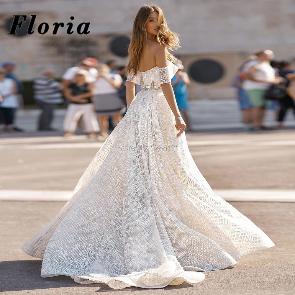 Мусульманское блестящее длинное свадебное платье Дубай с открытыми плечами Свадебные платья 2020 Robe De Mariee арабское платье невесты с блестками на заказ