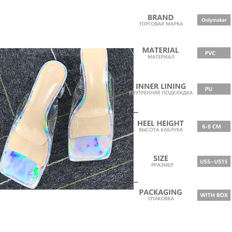 Женские Прозрачные Сандалии Onlymaker, на тонком высоком каблуке и ...