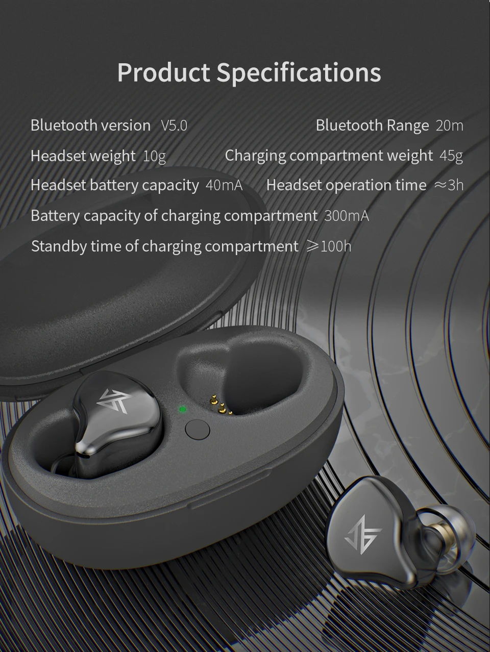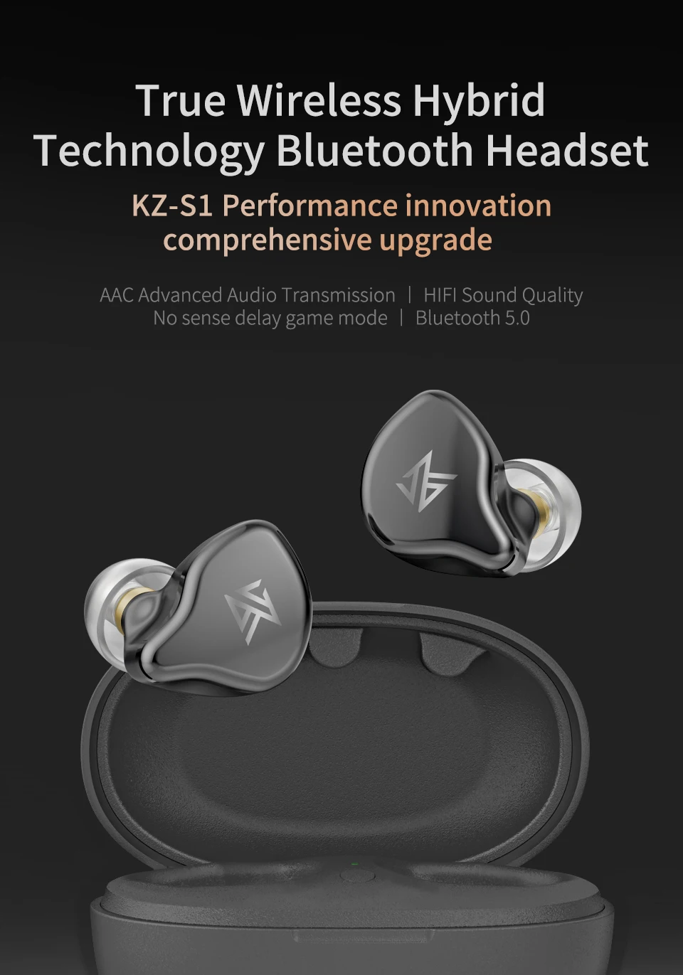 Наушники-вкладыши KZ S1 S1D, TWS, Bluetooth 5,0, Поддержка iOSAndroid, беспроводные, шумоподавление