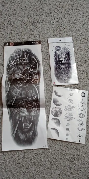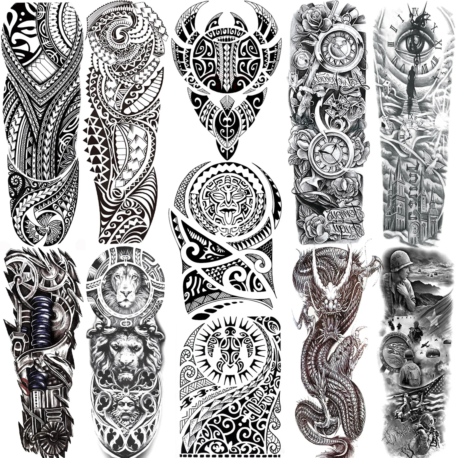 Черные Временные татуировки маори для мужчин, женщин, мужчин, имитация боди-арта, полный рукав, 3D волк, дракон, военные татуировки для шоу