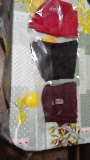 Приятные на ощупь , размер чуток большеват, на 44-46 взяла XL. Себе оставила одну пару остальные отдала подруге, липучки не было, все было упаковано в один пакет. После стирки не расползлись. Винный и синий цвет очень красивые. К покупке рекомендую