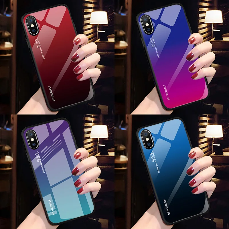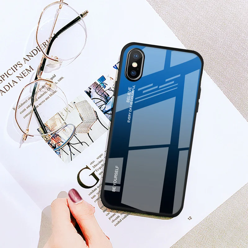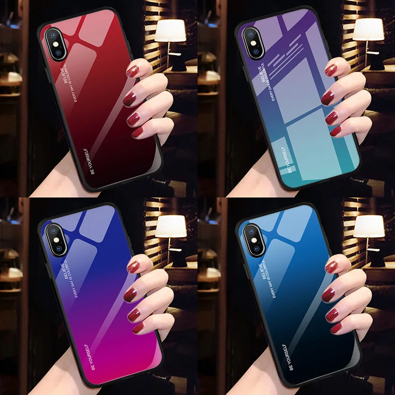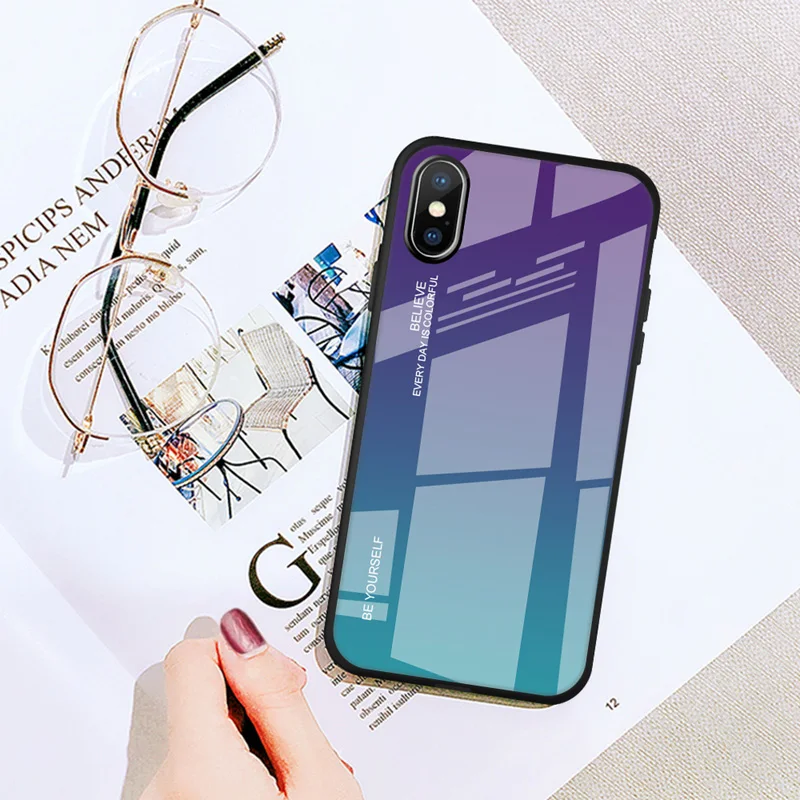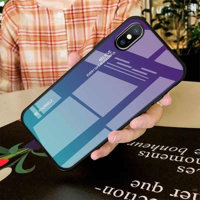 Двухцветный 9H градиентный чехол для телефона из закаленного стекла для Apple iPhone 11 Pro XS Max X XR 8 7 6 6S Plus защита от падения задняя крышка