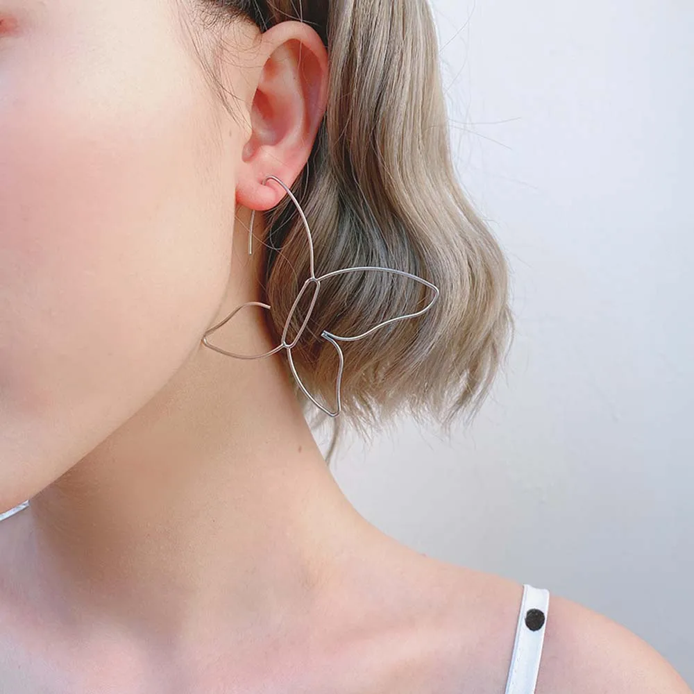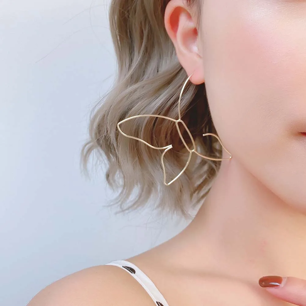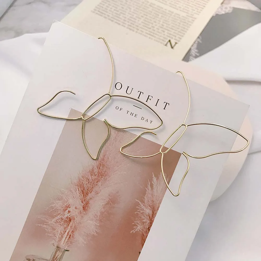 Серьги в форме бабочки минималистичные металлические полые серьги для женщин золотого и серебряного цвета ювелирные изделия для ушей