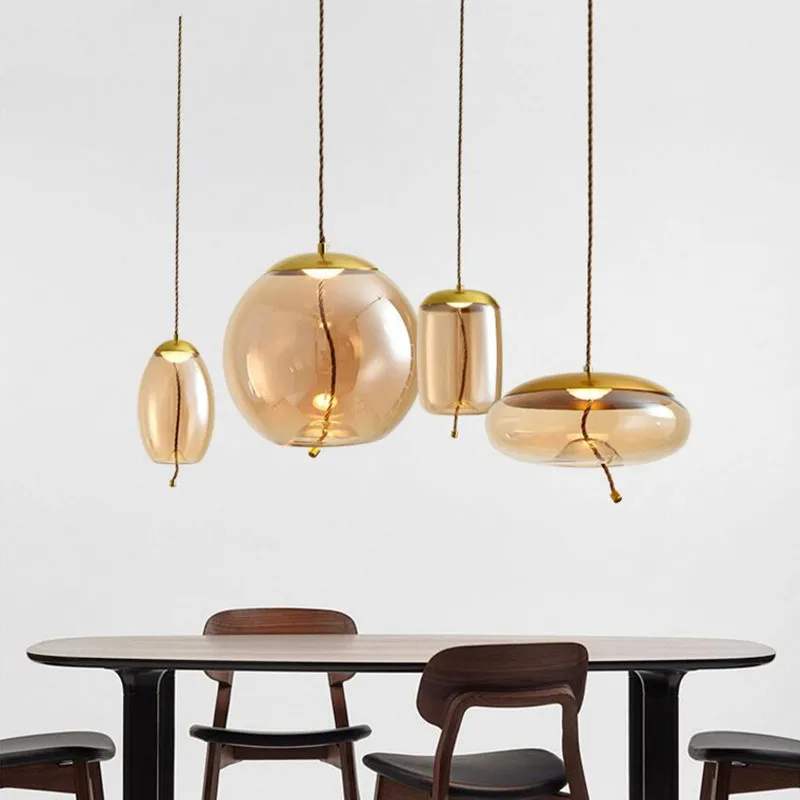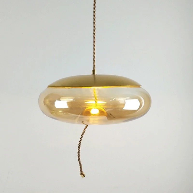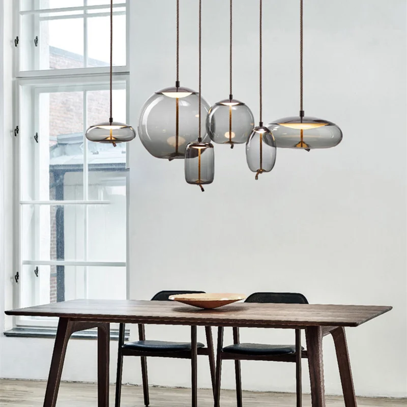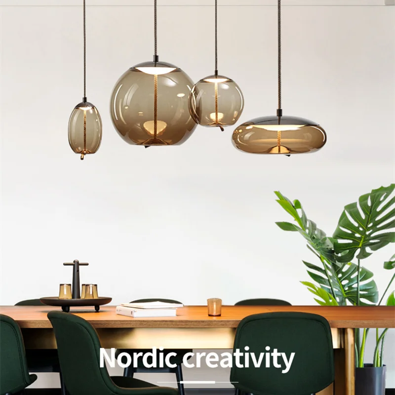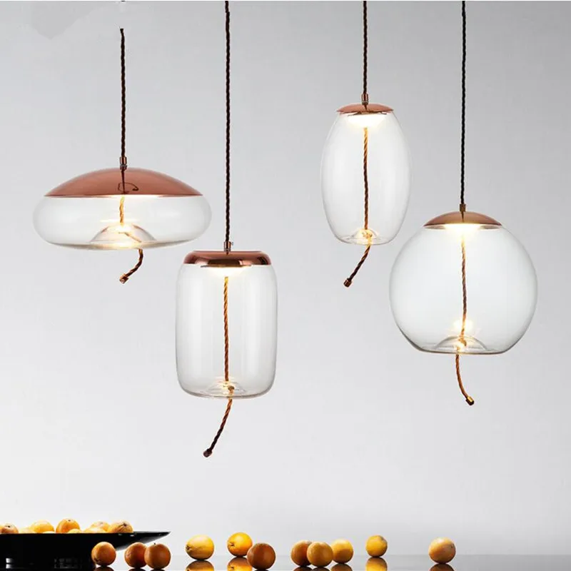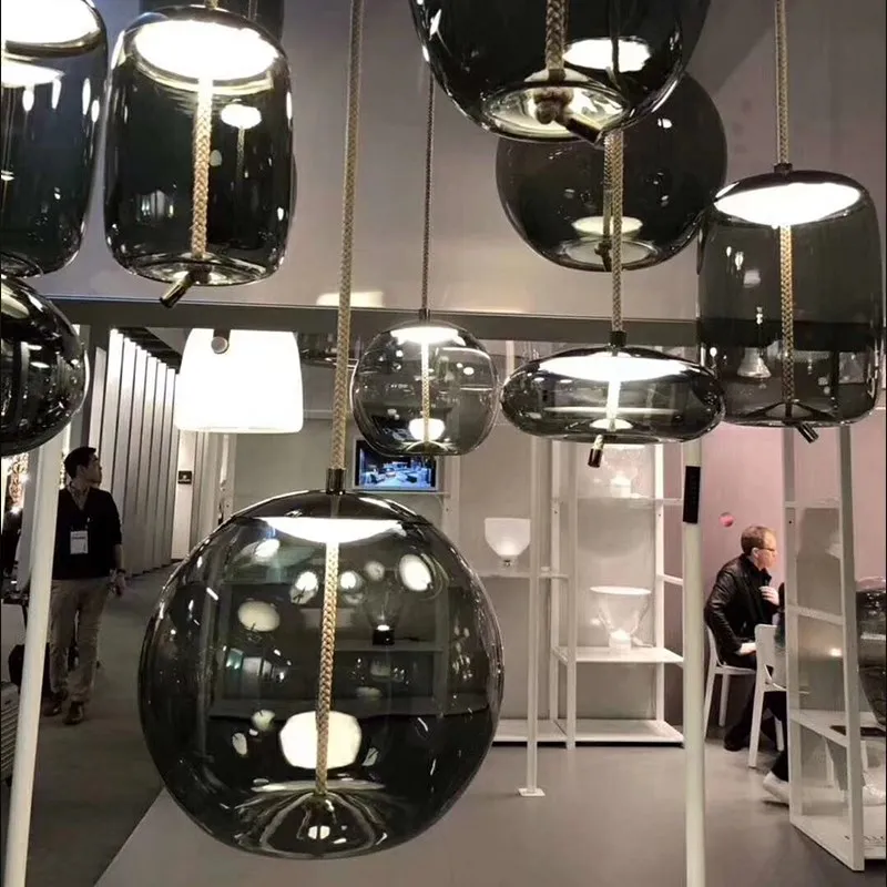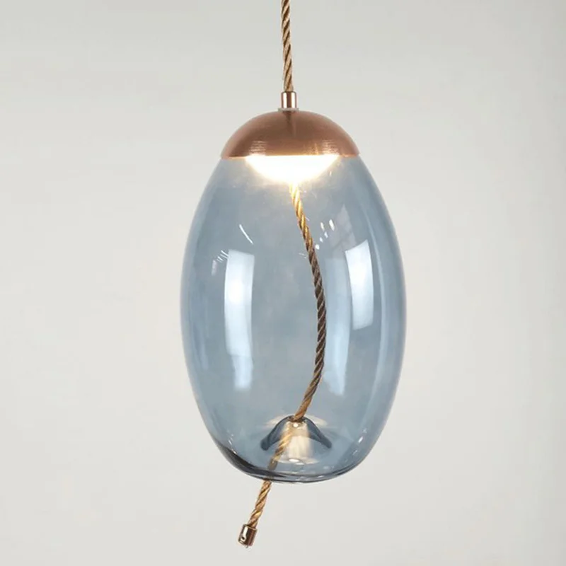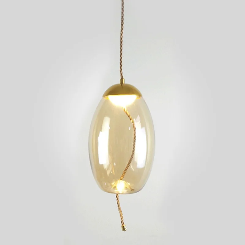 Современная стеклянная Подвесная лампа из льняной веревки, минималистичный дизайнерский круглый эллиптическая Подвеска светильник для гостиной, спальни, украшение