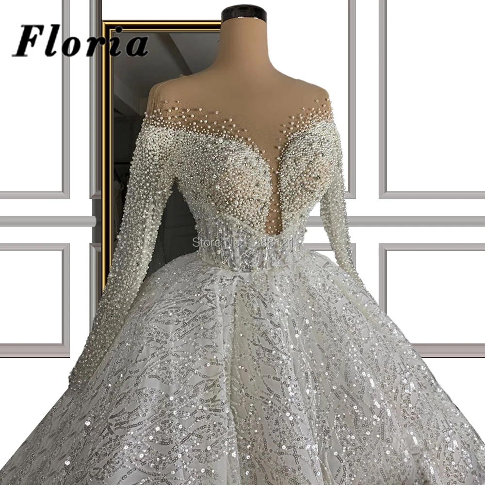 Блестящее свадебное платье с бусинами 2020 Vestidos De Noiva, свадебные платья с кристаллами на Ближнем Востоке, Пышные свадебные платья, платья для невесты