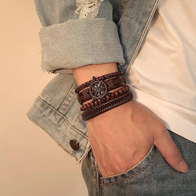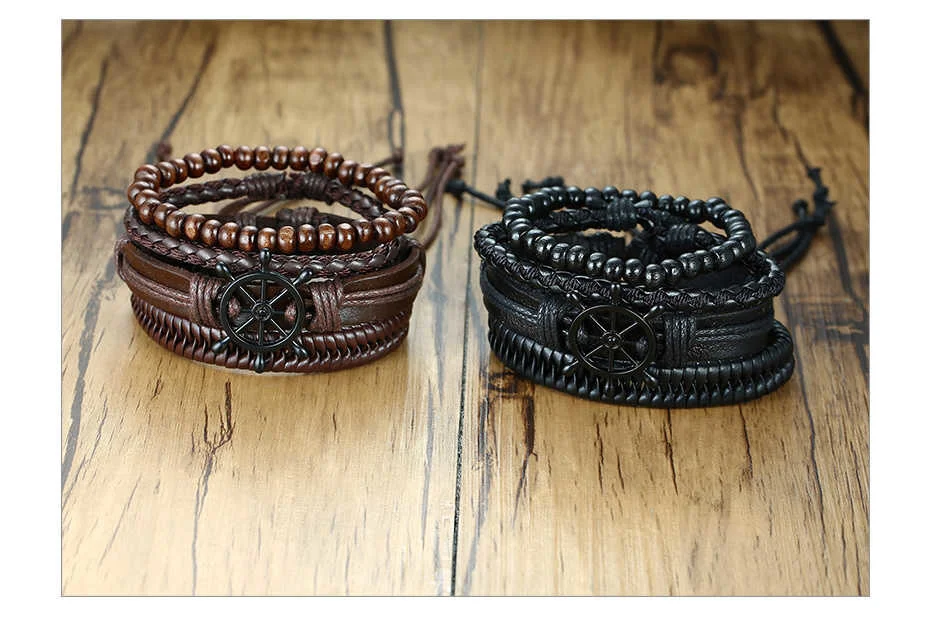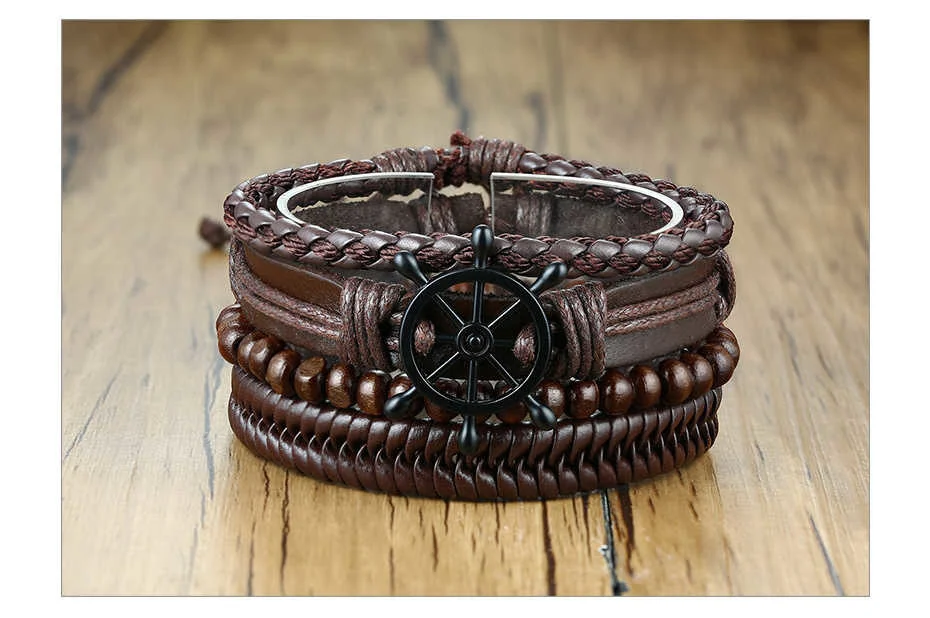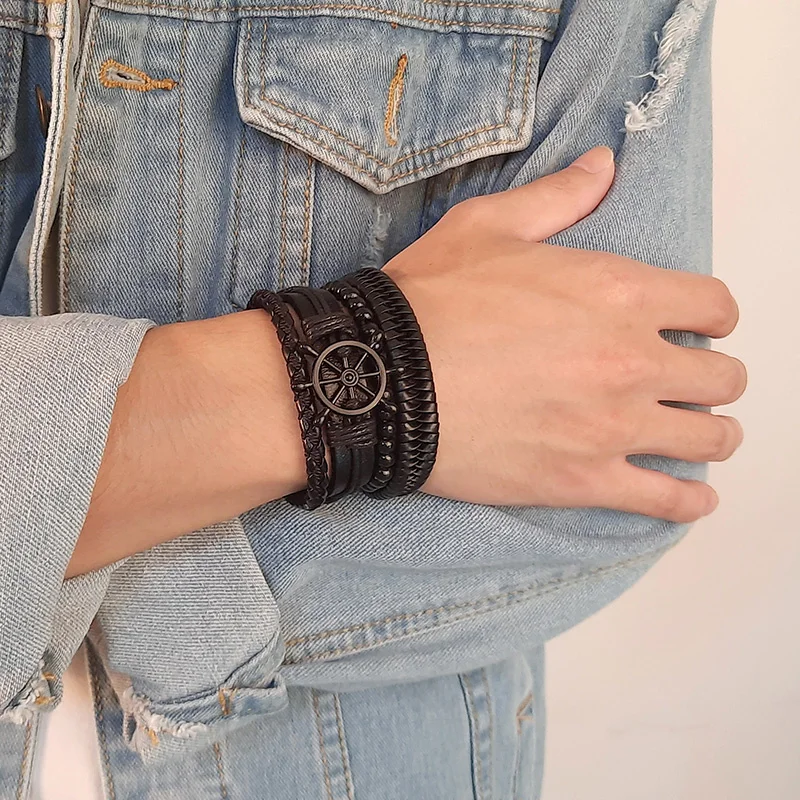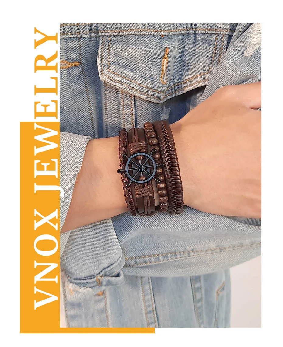 Комплект браслетов Vnox для мужчин, широкий браслет с перекрестным штурвалом, изящное дерево жизни, кожаный браслет, Повседневная бижутерия для отдыха