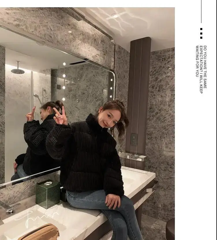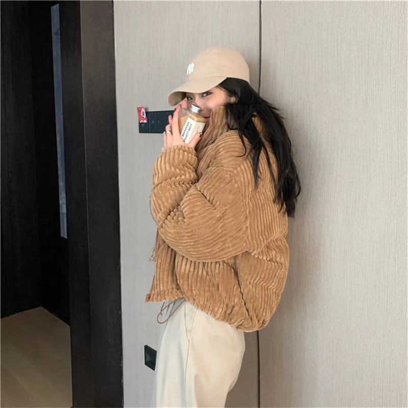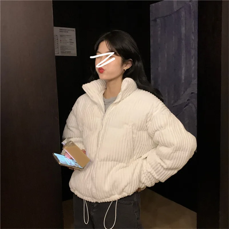 Вельветовая короткая куртка с хлопковой подкладкой, повседневное однотонное утепленное пальто, женская зимняя куртка на молнии