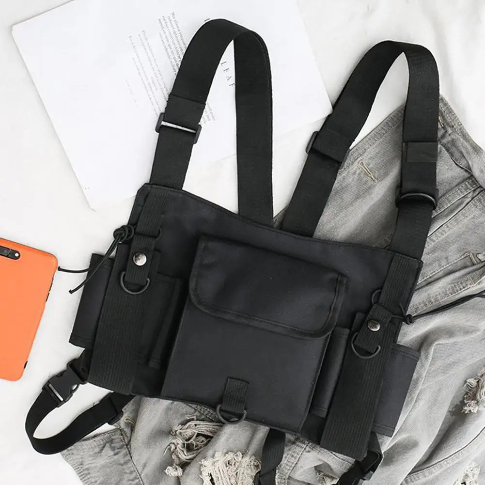 Регулируемая нагрудная сумка для жилета, унисекс, сумка на пояс с двойным плечом
