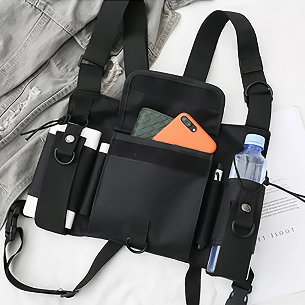 Уличный Регулируемый жилет унисекс, нагрудная подвесная сумка, двойная сумка через плечо, поясная сумка