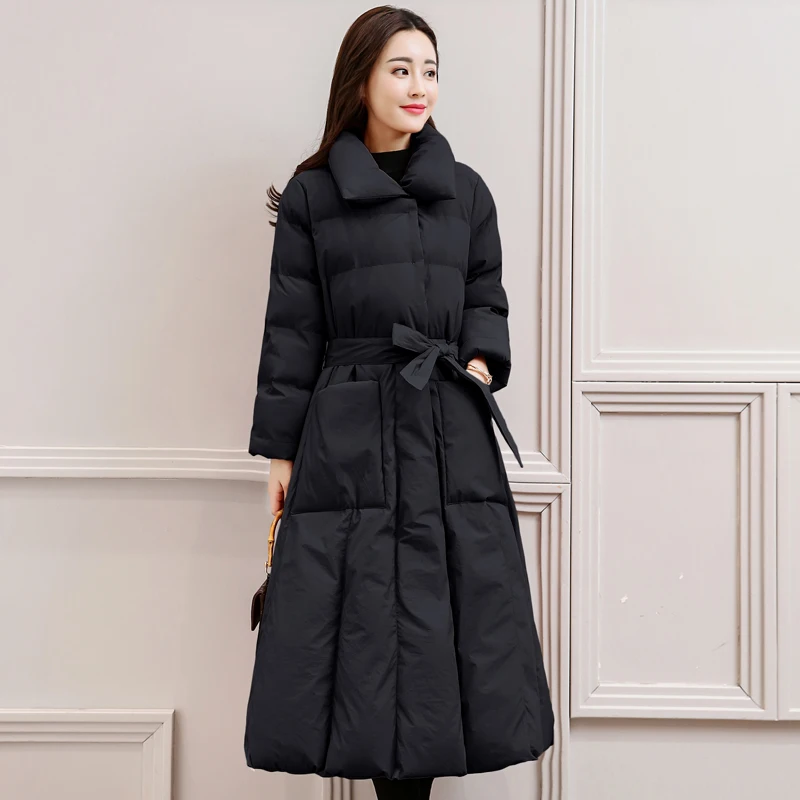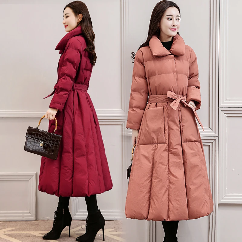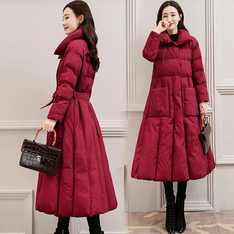 Женские утолщенные хлопковые трапециевидной формы, выше колена, длинная парка, верхняя одежда с поясом с лацканами Куртка с воротником 4 Цвета размера плюс S-5XL