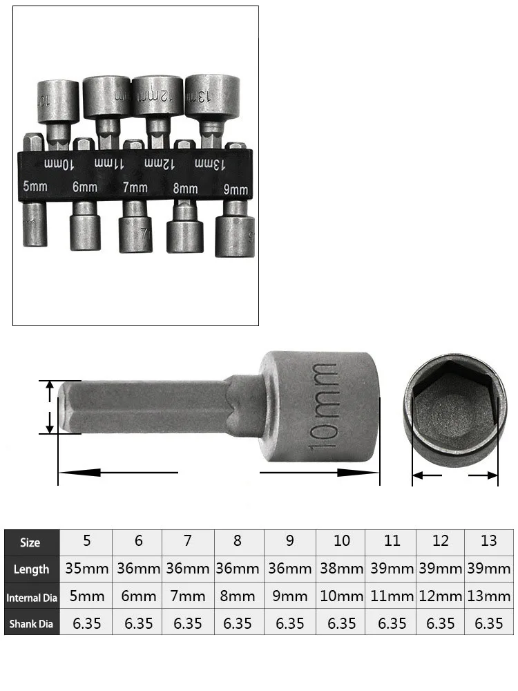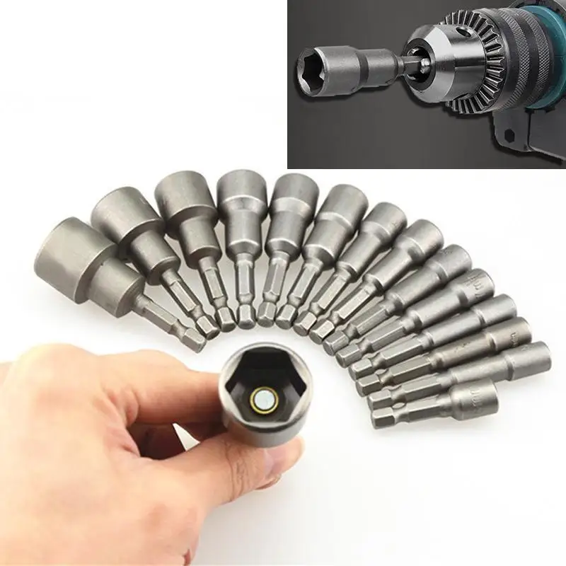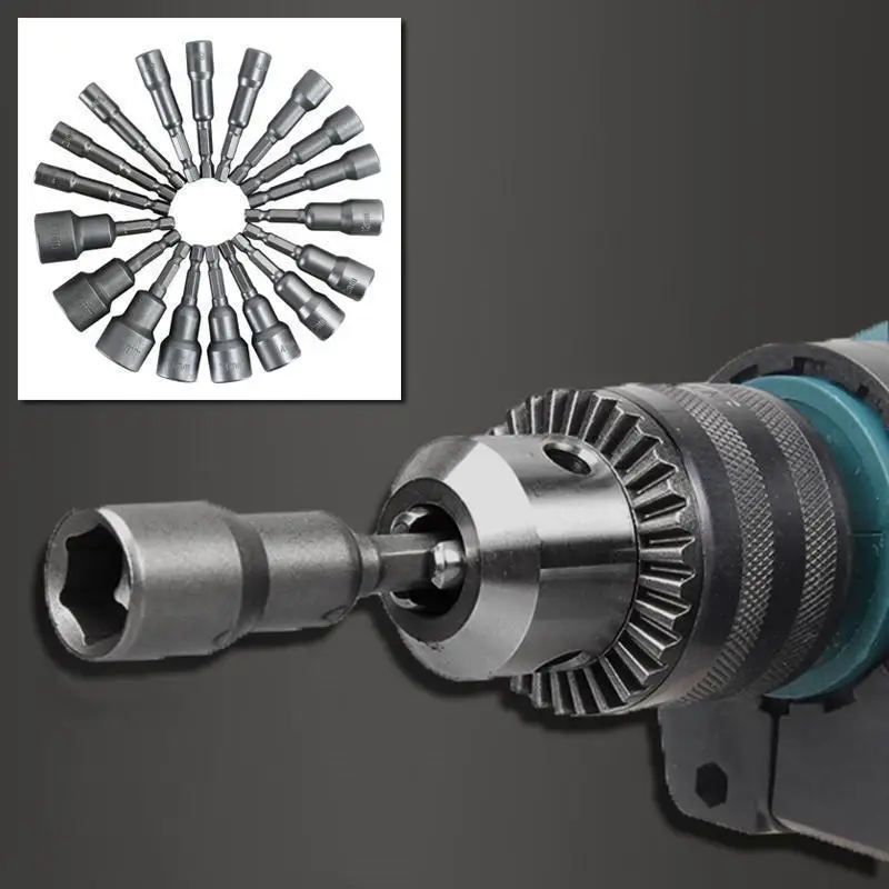 14963PcsMagnetic Шестигранная рукава для шлица звездочка Набор торцевых гаечных ключей с шестигранной головкой Мощность гайковерт дрель Гайка Драйвер аксессуары для отверток