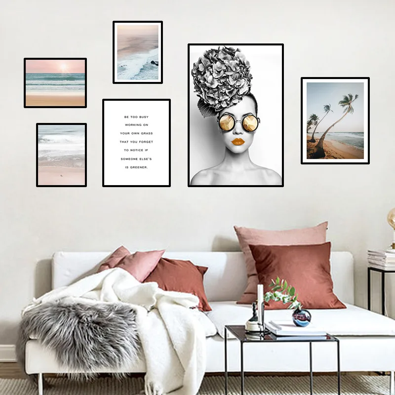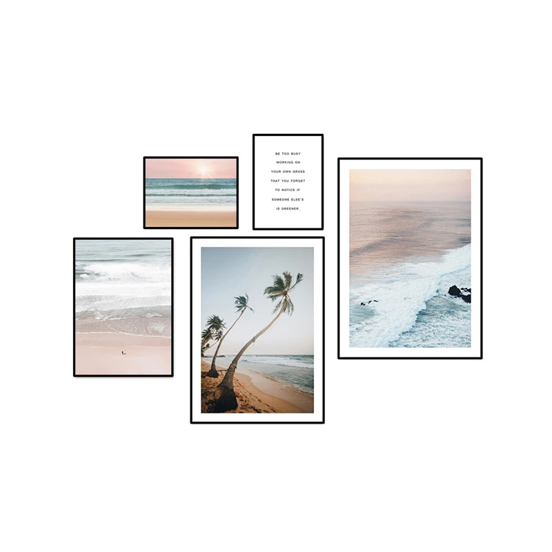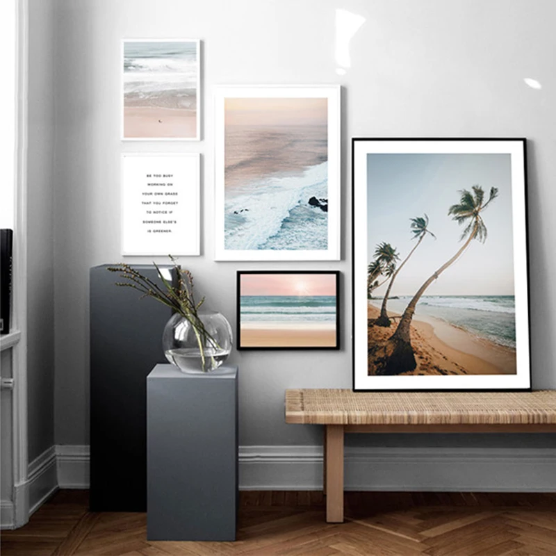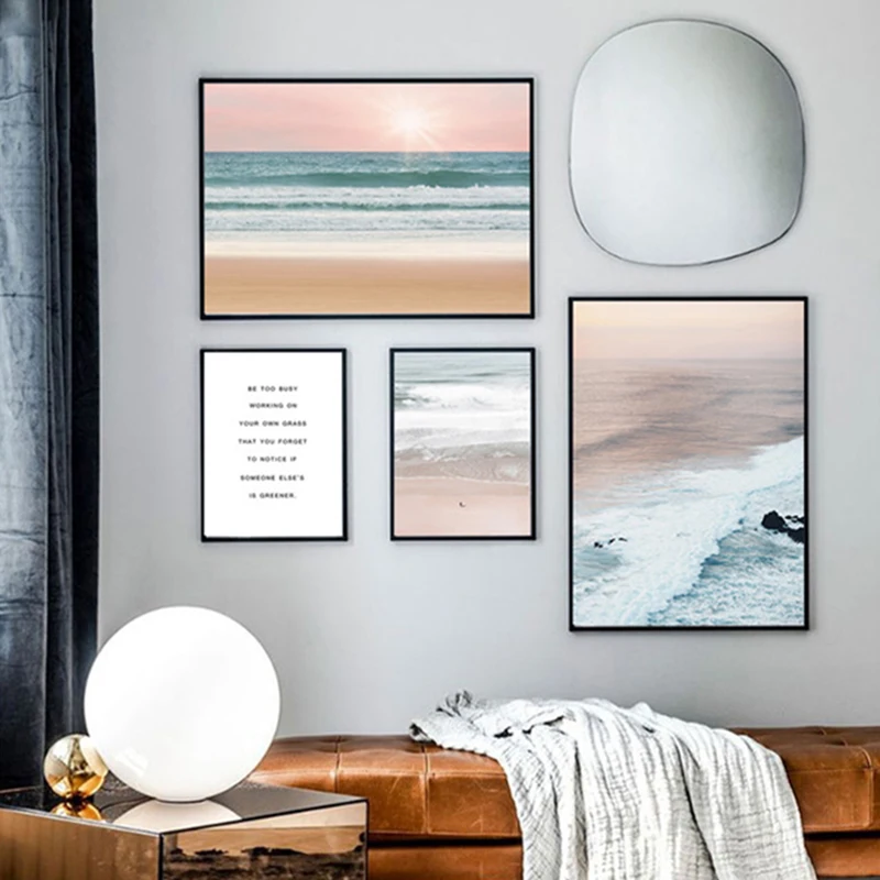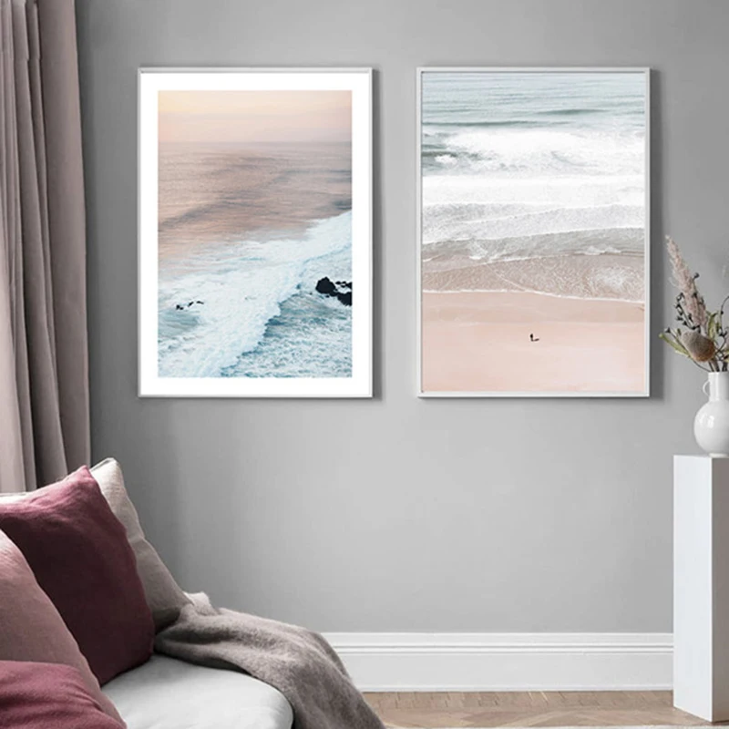 Плакат в скандинавском стиле, Северный океан, волна, розовый пляж, настенная живопись, холст, принт, морской пейзаж, картина, тропические фотографии, домашний декор HD0003