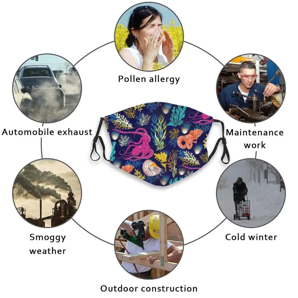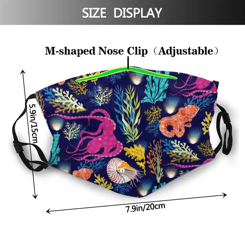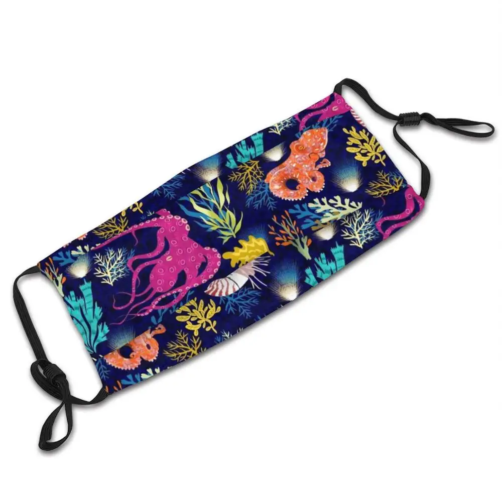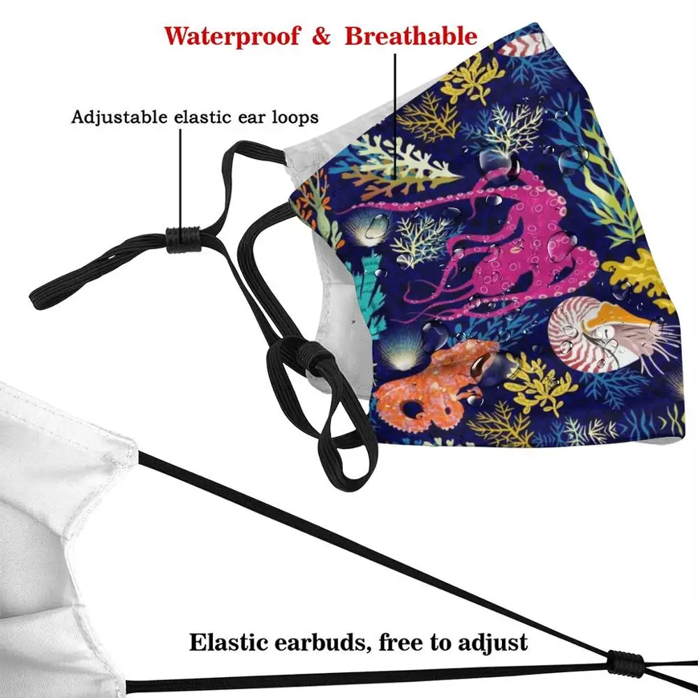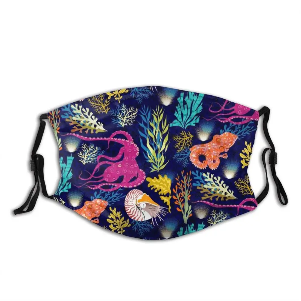 Маска для лица Cephalopods с фильтром, цвет морской волны, нижнее белье, Морской голубой плавать, Sub Corals, морские водоросли, технический узор