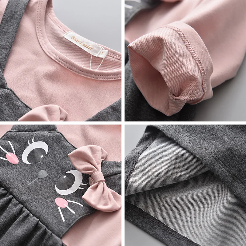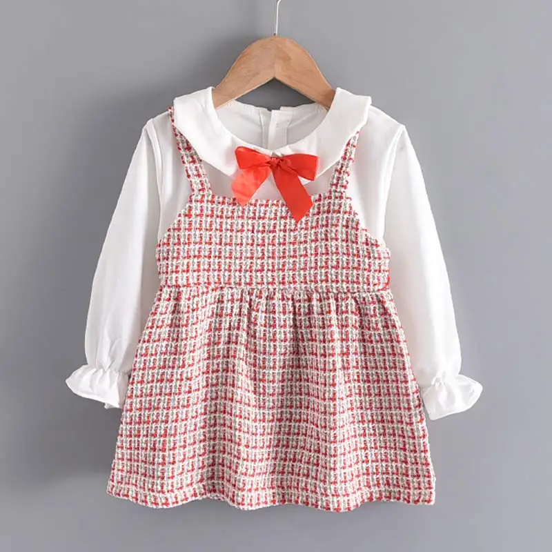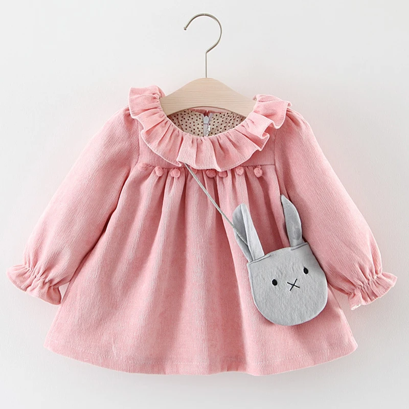 Хлопковое платье с бантом, для новорожденных девочек, Осень-зима, комплект одежды с платьем