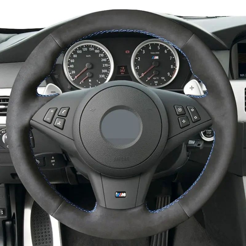 Чехлы рулевого колеса автомобиля для BMW M6 2005 - 2010 E60 E63 E64 прошитая вручную черная замшевая оплетка рулевого колеса