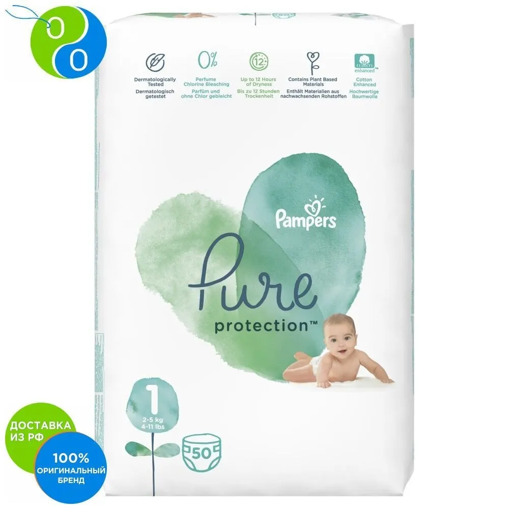 Подгузники Pampers Pure Protection 2-5 кг, размер 1, 50 шт.
