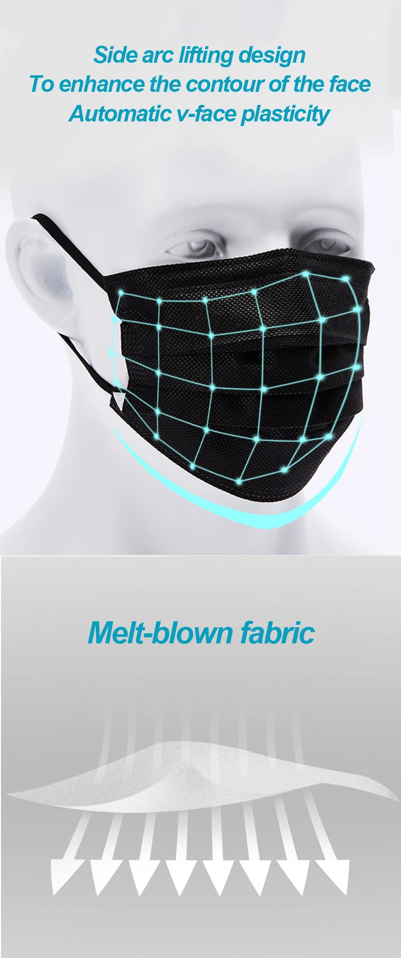 10-600 шт. маска одноразовая маска для лица Черный Nonwove 3 Слои м...