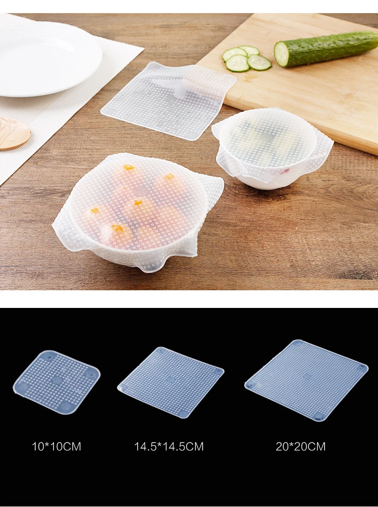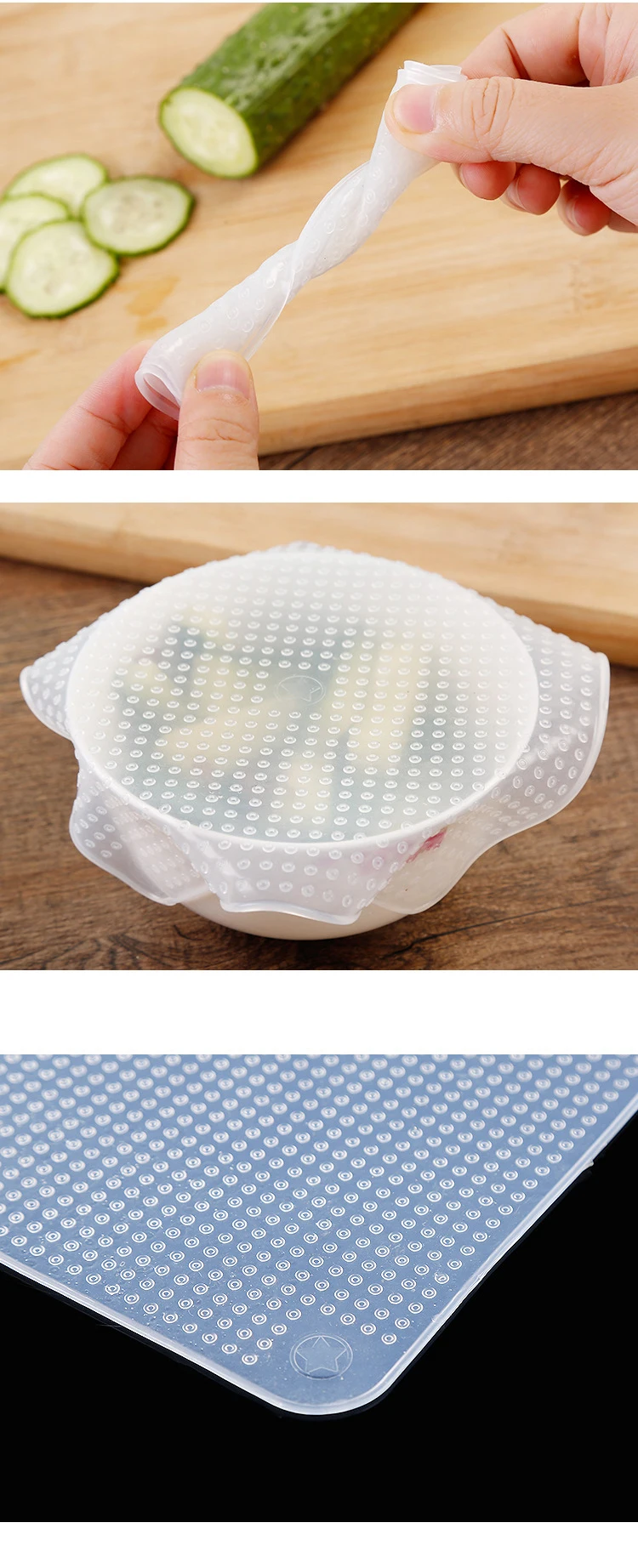 4 шт./компл. силиконовая обертка, крышки для пищевых продуктов, сохраняющая свежесть, многоразовая печать крышка, растягивающаяся вакуумная обертка для еды, кухонная