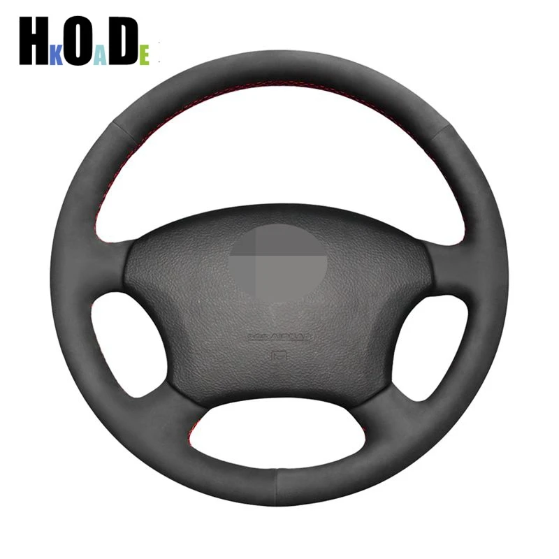 Сшитый вручную черный замшевый кожаный чехол рулевого колеса автомо...