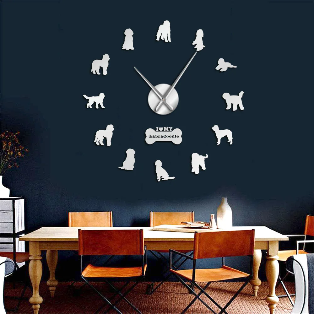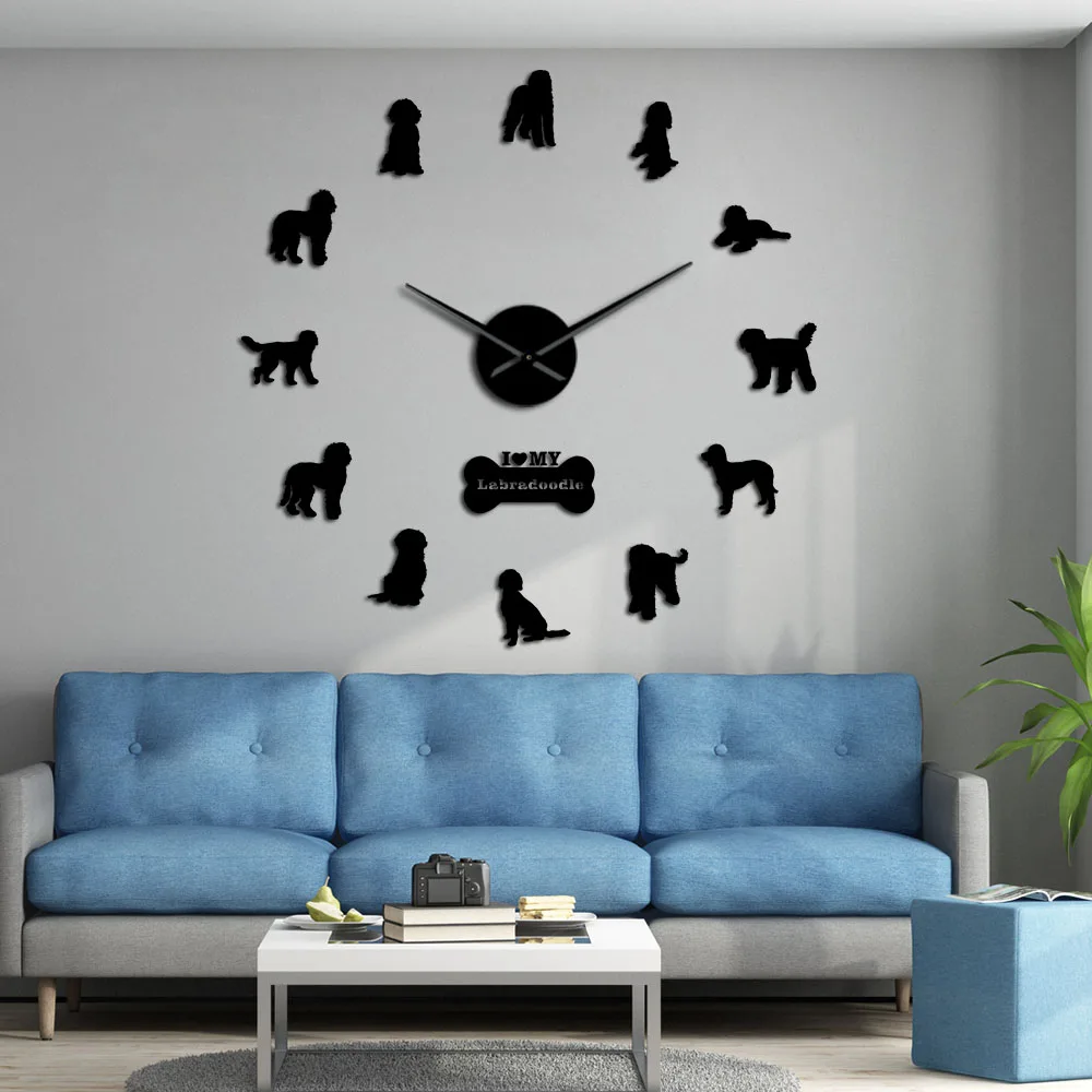 Leonberger Dog DIY гигантские бесшумные настенные часы для щенков б...