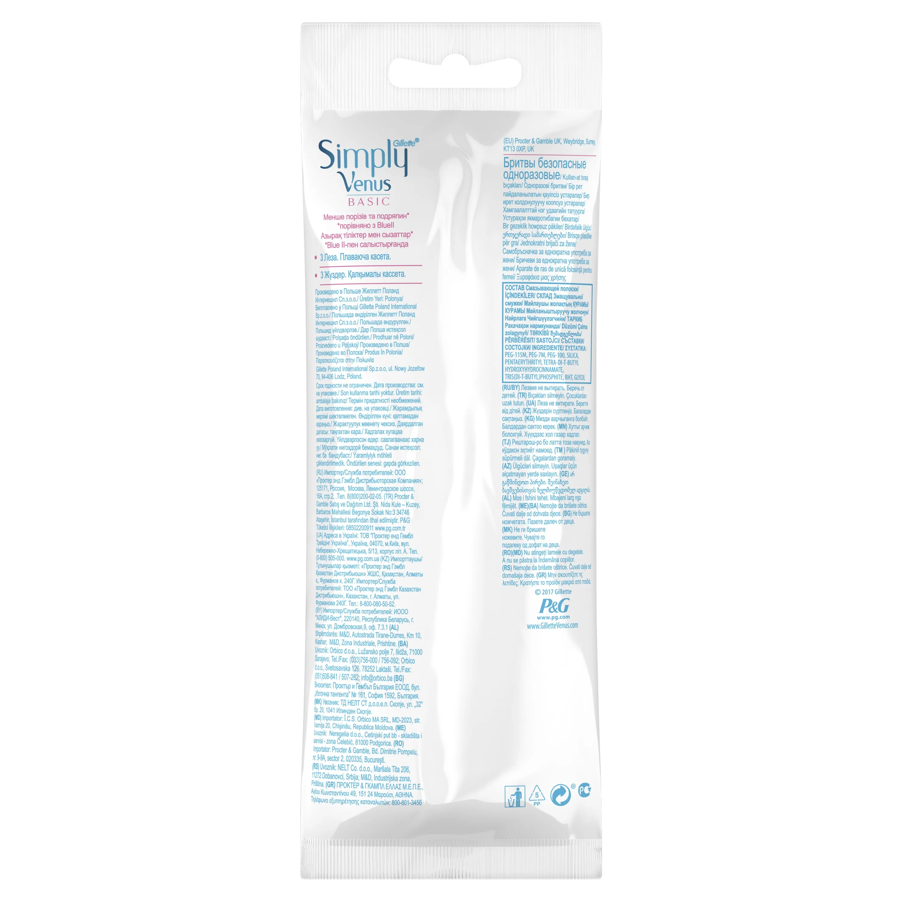 Одноразовые бритвы для женщин Gillette Simply Venus3 Basic имеют плавающую головку с 3 лезвиями, увлажняющую полоску для легкого скольжения и удобную ручку.