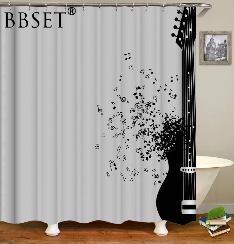 Музыкальный инструмент, занавеска для душа, гитара, состав музыкальных нот, узор, водонепроницаемая многоразмерная декоративная занавеска для ванной