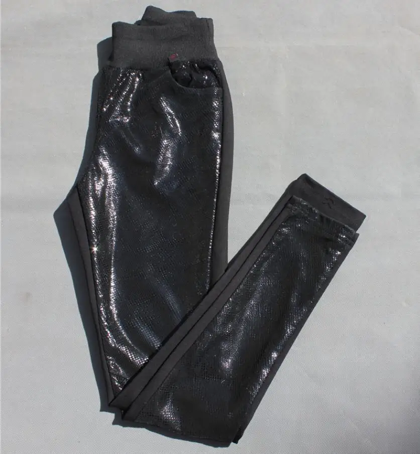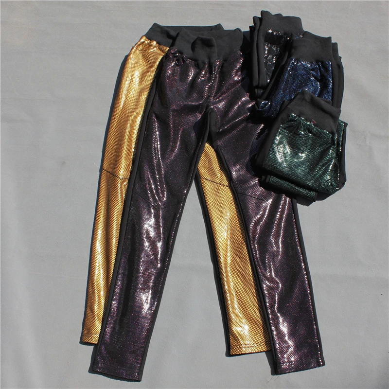 Блестящие Брюки-карандаш из натуральной овечьей кожи с эластичным поясом, женские модные брендовые длинные брюки из натуральной кожи, F1573