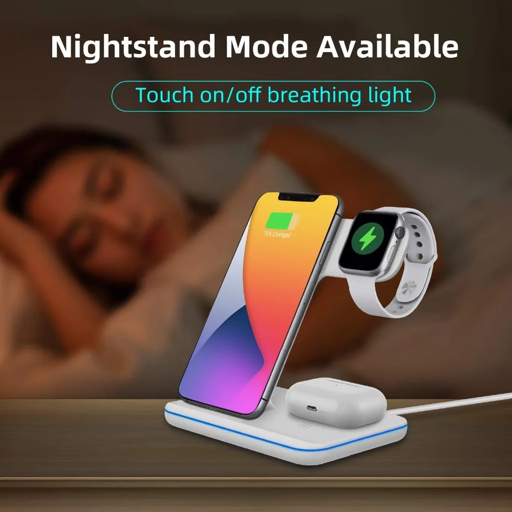 Беспроводное зарядное устройство 3 в 1 Qi для iWatch 7 6 5 4 AirPod...
