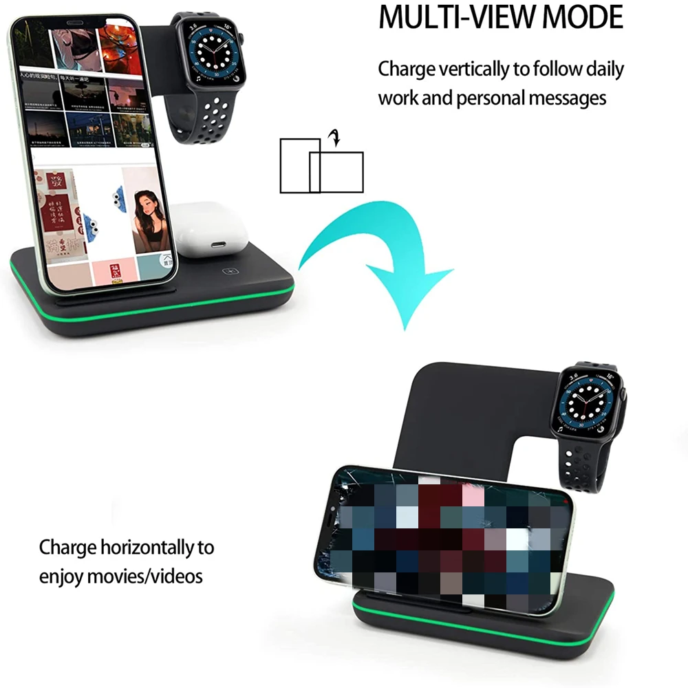 Беспроводное зарядное устройство Qi 3 в 1, 15 Вт, подставка для iPh...
