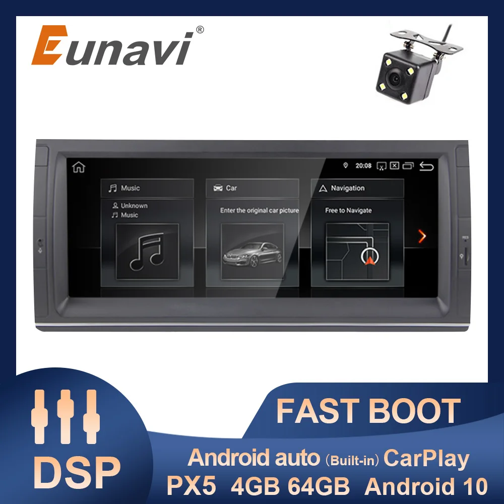 Автомагнитола Eunavi, мультимедийный плеер на Android 10 с экраном 10,25 дюймов, GPS, 4G, Wi-Fi, для BMW E53, E39, X5