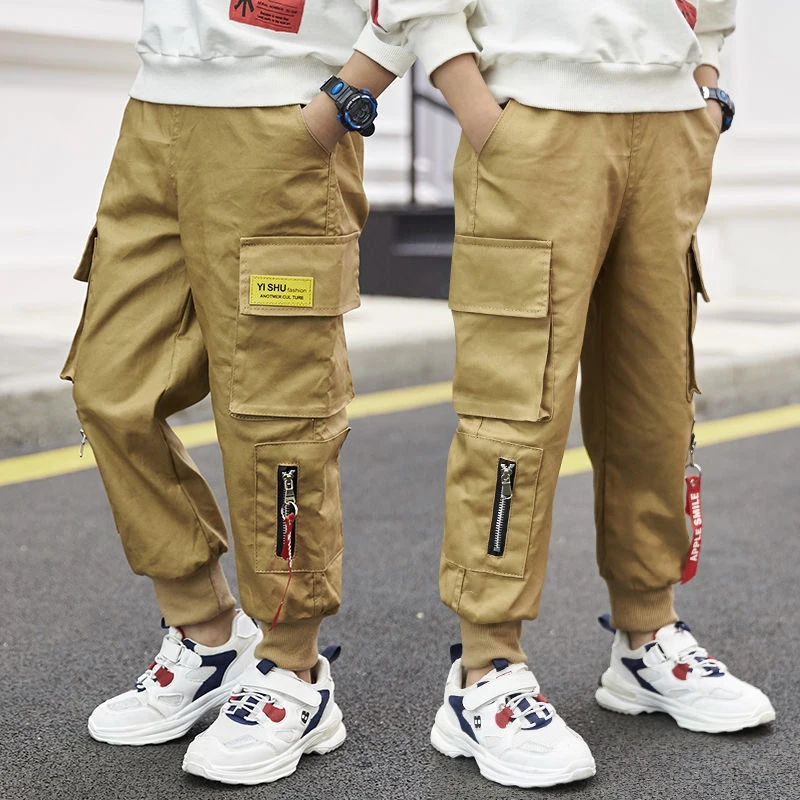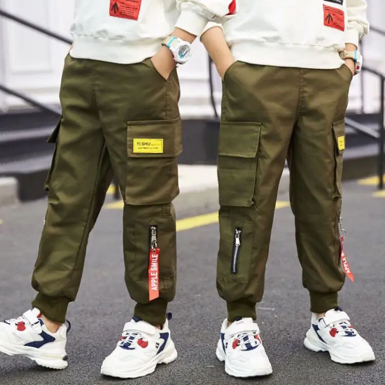 EACHINштаны для мальчиков, новые штаны-карго осенние спортивные штаны для мальчиков брюки с несколькими карманами детские повседневные штаны уличная одежда