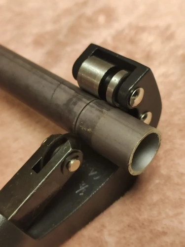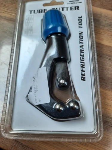Режет алюминевую трубу, при толщине 3мм лучше аккуратно, изза люфта лезвия может неровно отрезать