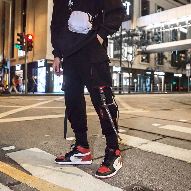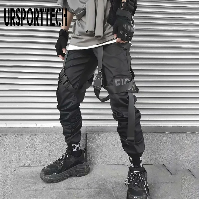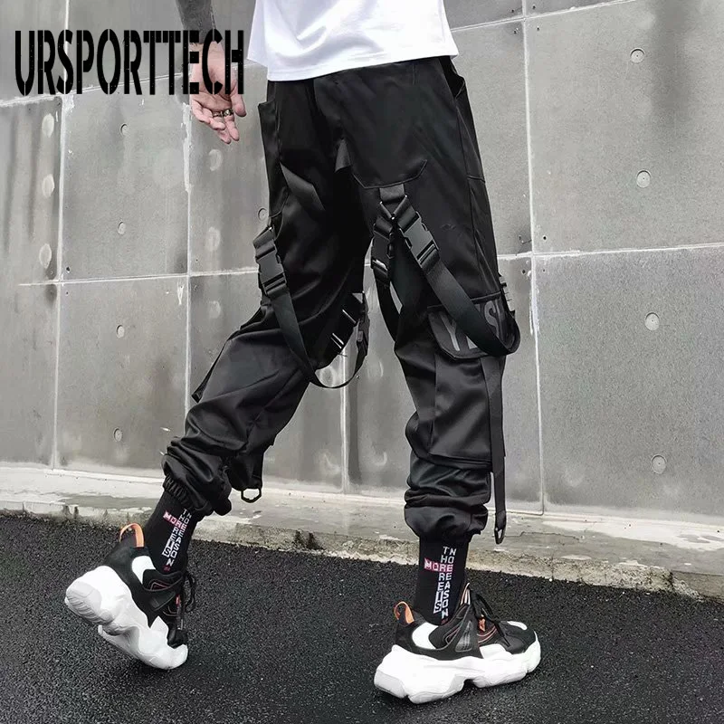 Брюки-карго URSPORTTECH мужские с лентами, джоггеры, уличная одежда, модные брюки с эластичным поясом, хип-хоп, XXXL, лето 2020