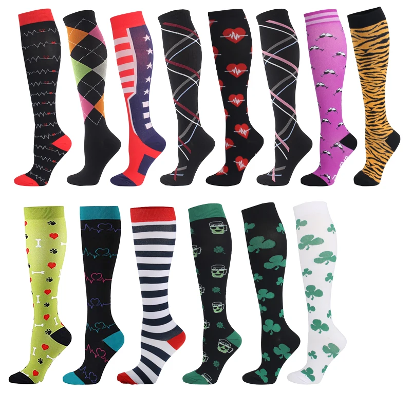HUAYASX Спортивные Компрессионные носки давление ромбовидный шарик с полосками сердца звезды Леопард стрела эластичные чулки для спорта на открытом воздухе