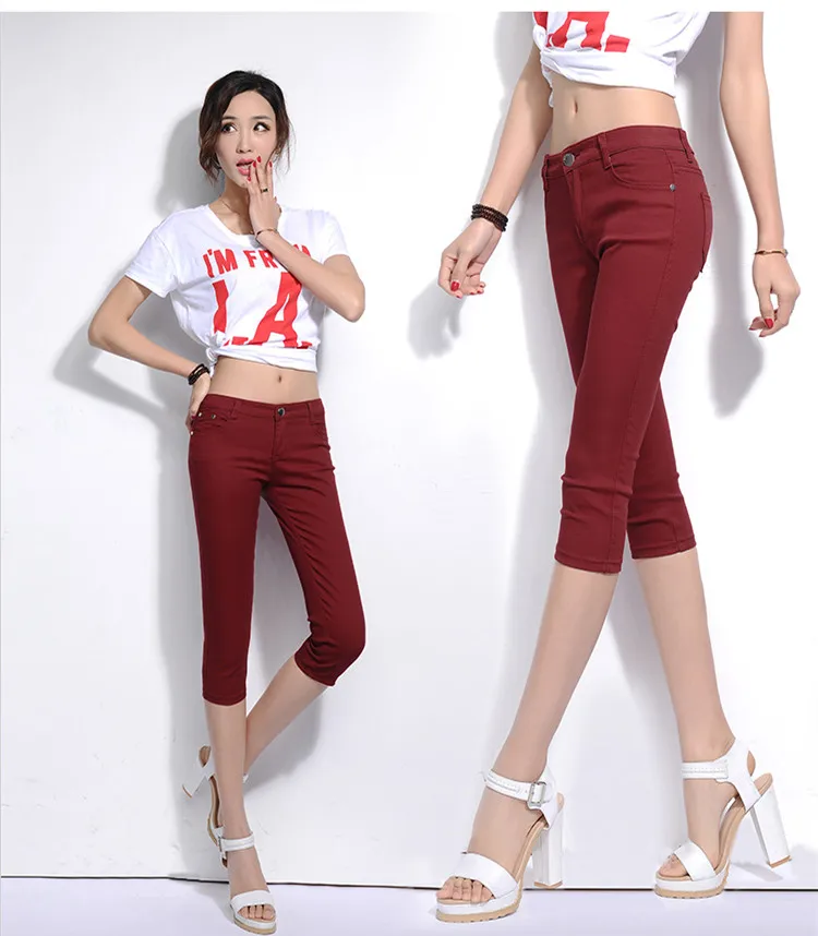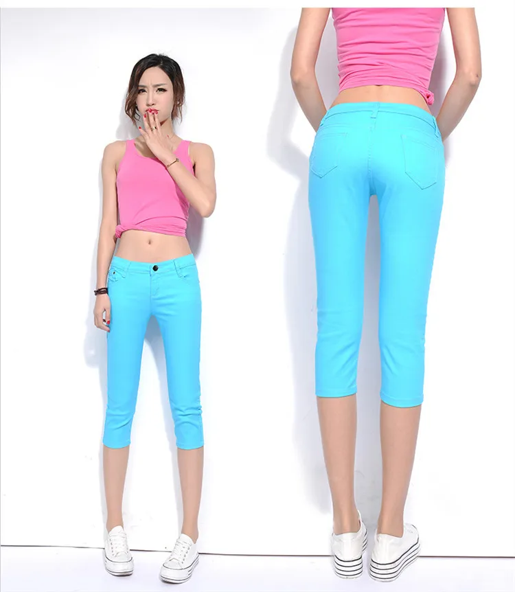 Женские обтягивающие леггинсы LPOWSS, узкие обтягивающие джинсы карамельных цветов, эластичные Капри, укороченные брюки, большие размеры, корейские повседневные штаны