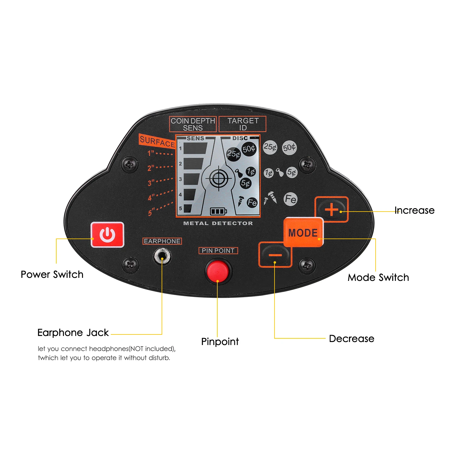 С помощью этого металлоискателя вы можете охотиться за монетами, реликвиями, ювелирными изделиями, золотом и серебром практически в любом месте, универсальном и простом в использовании.Особенности:ЖК-дисплей: показывает вероятный Тип обнаруживаемого металла, уровень SENS с сегментом, глубину цели и состояние батареи.Разъем для наушников: позволяет подключать наушники (не входят в комплект), что позволяет им управлять без помех.Три тона: Есть 3 отличительных тона (низкий, средний и высокий) для разных типов металлов, что упрощает идентификацию обнаруживаемого металла.Два режима работы: со всеми металлическими и дисковыми режимами работы для обнаружения всех видов металла, выбора нежелательной цели.Функция точечной точки: поможет вам найти целевой объект и определить его точное положение.Водонепроницаемая поисковая катушка: позволяет осуществлять поиск металлических предметов на мелководье. (Обратите внимание, что корпус управления не является водонепроницаемым)Регулируемый Шток: вы можете регулировать высоту для комфортного использования.Характеристики:Цвет: черныйМатериал: АБСПодсветка: ДаРежим: полностью металлический, дискИндикация обнаружения: ЖК-экранРабочая частота: 6,6 кГц ± 0,2 кГцГлубина обнаружения: 180 мм (тестовая монета: 25 долларов США)Источник питания: батарея 2*9 в 6F22 (не входит в комплект)Размер блока управления: 144*90*148 мм/5,67*3,54 * 5.83inДиаметр поисковой катушки: 219 ммРегулируемая высота детектора: 1090 ~ 1330 мм/42,91 ~ 52.36inВес изделия: 1199 г/фунтаВес посылка: 1712 г/фунтаПосылка: 55,5*27*13 см/21,85*10,63 * 5.12inПосылка тация:1 * Основной блок металлоискателя1 Катушка обнаружения2 шатуна1 * подлокотник1 * Руководство (на английском языке)Примечание:Поисковая катушка водонепроницаема, но корпус управления не является водонепроницаемым.