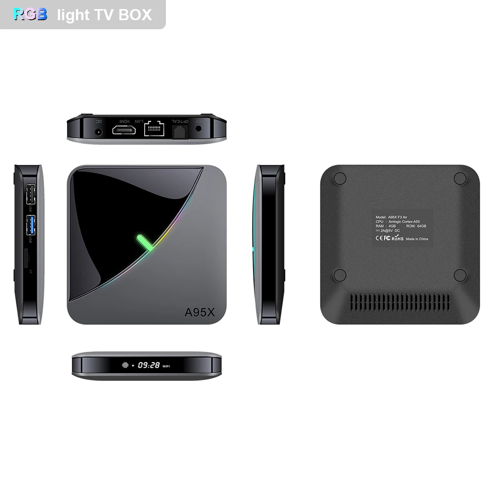 ТВ-приставка A95X F3 Air, Android 2020, 4 + 64 ГБ, 4K, RGB светильник 9,0