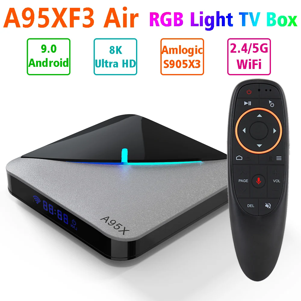 ТВ-приставка A95X F3 Air, Android 2020, 8K, RGB светильник Amlogic S905X3, 4 ГБ, 64 ГБ, Wi-Fi, 4K, Netflix, Smart TV, Android 9, A95XF3, 9,0