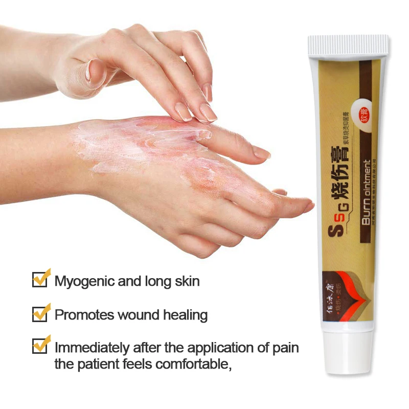 Особенности:1. Сразу после применения боли, больной чувствует себя комфортно, эксудата постепенно уменьшается, и других обезболивающих средств можно избежать.2. Способствует заживлению ран и сокращает курс лечения.3. При небольших ожогах на 3 градуса нет прививки кожи. Нет очевидного рубца После заживления РАН, и нет деформации контрактуры.4. Для инфицированных глубоких ожоговых ран, есть хороший эффект ускорения декомпрессии, миогенной и длинной кожи.5. Обладает сильной бактерицидной способностью, может уменьшить возникновение сепсиса после нанесения.