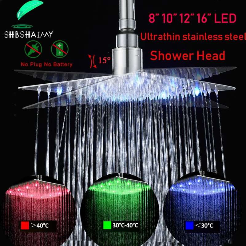 SHBSHAIMY светодиодный хром осадков кран Насадки для душа Ванная комната кран Нержавеющаясталь квадратный масляный Поверхность бронзовый разбрызгиватель Температура Sens