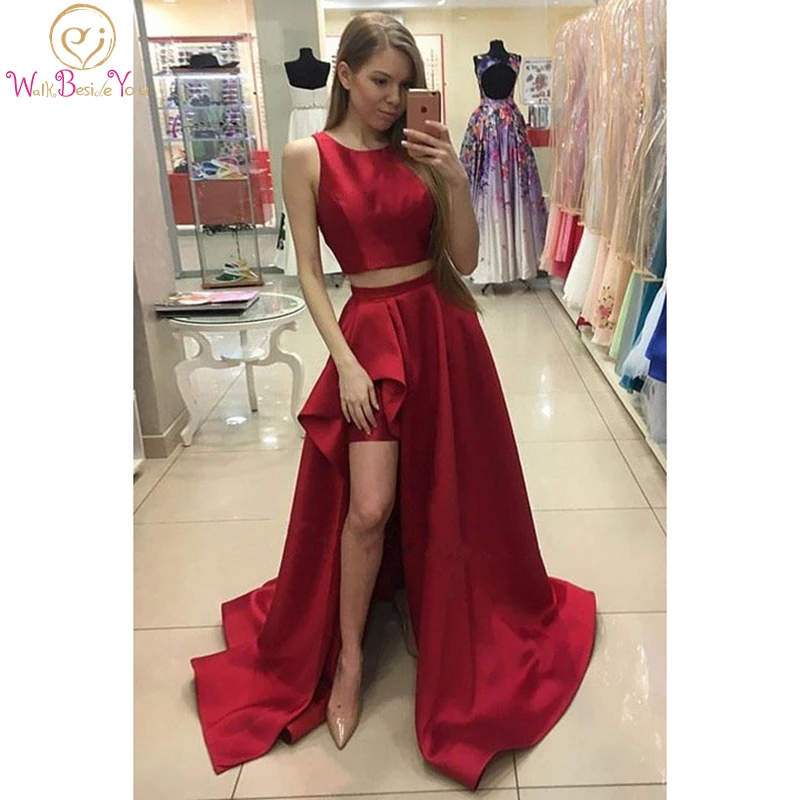 Бордовое платье из двух частей для выпускного вечера 2020 атласное ТРАПЕЦИЕВИДНОЕ платье без рукавов vestidos знаменитости вечернее платье на заказ